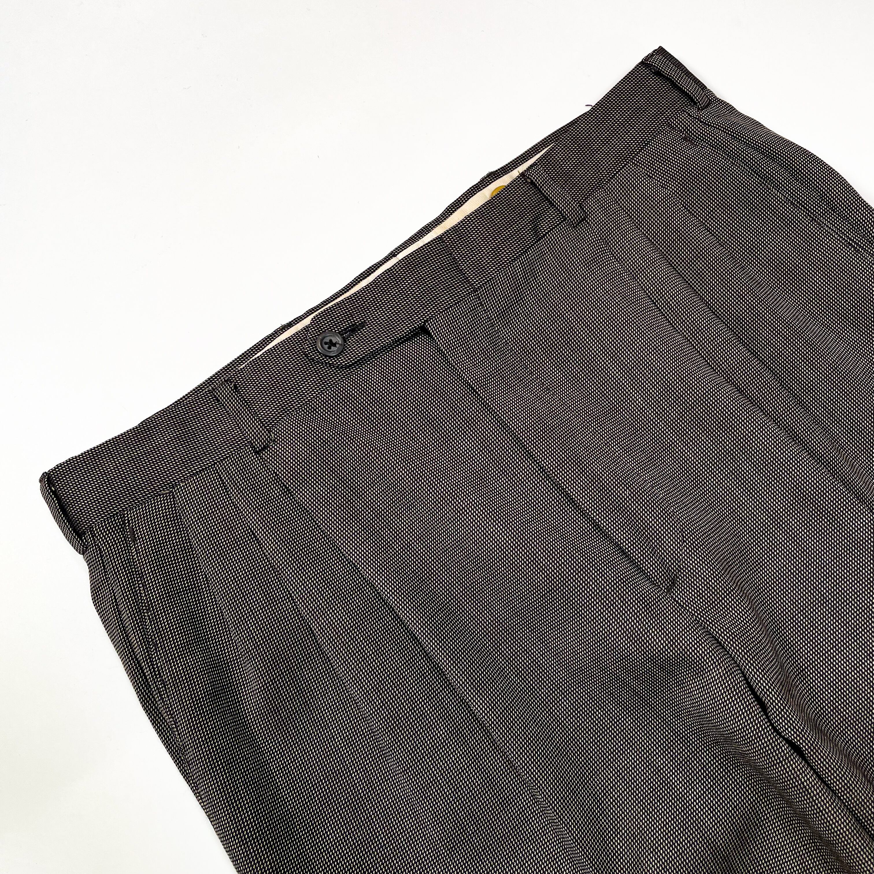 1990s " Nordstrom / Berle / loro piana " super 110's wool three tuck slacks . made in usa . size 33×29.
